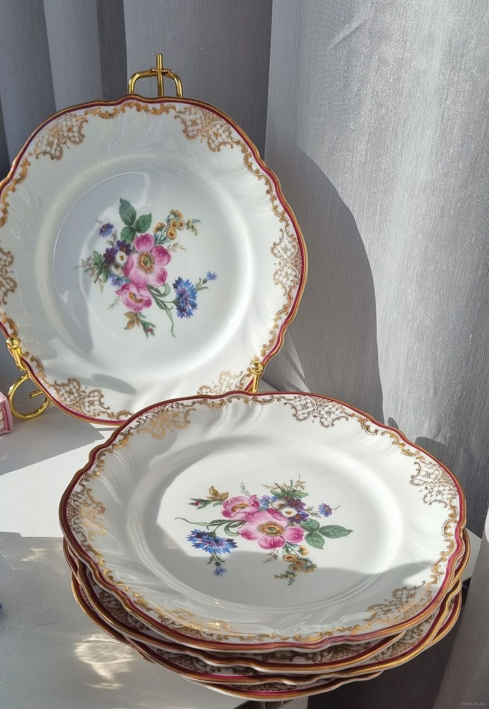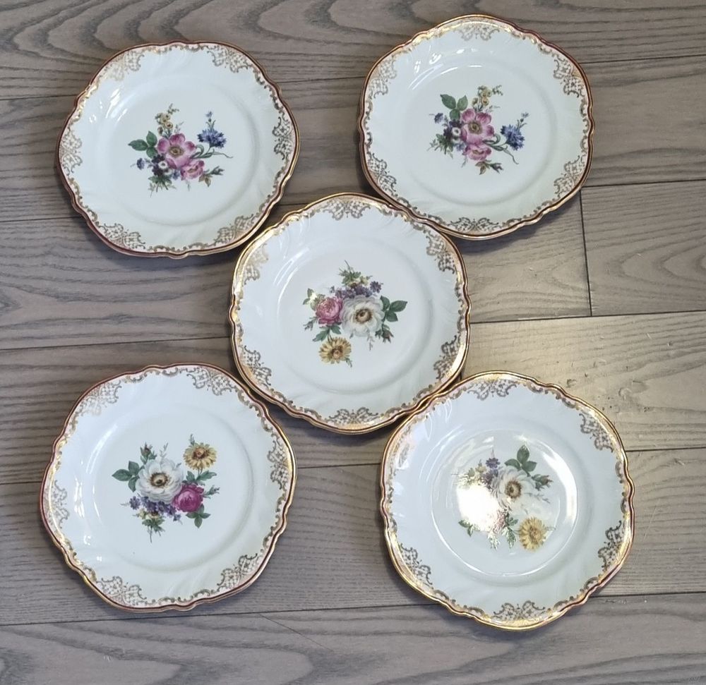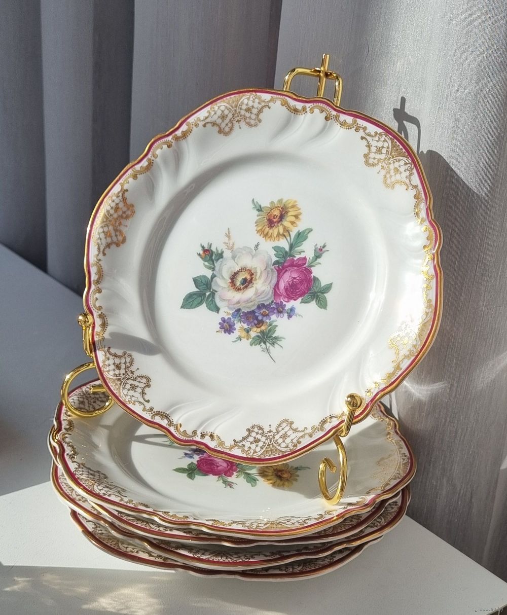 Фарфоровые нежные винтажные тарелочки с цветочным орнаментом и фестончатыми краями от мануфактуры Rosenthal, серия «Victoria».