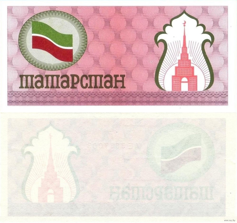 В 1991-1996 годах в связи с дефицитом общероссийских денег правительство Татарстана выпускало собственные купюры (чеки)