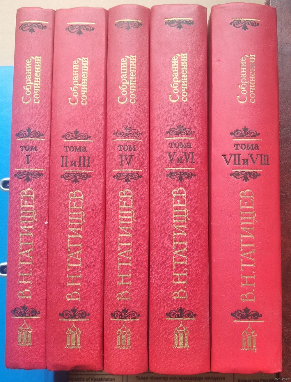 Татищев В.Н. Собрание сочинений в восьми томах. 5-ти книгах. М., Ладомир. 1994-1997 гг 500 с., 688 с., 556 с., 784 с., 952 с. Твердый переплет. Энцциклопедический формат.