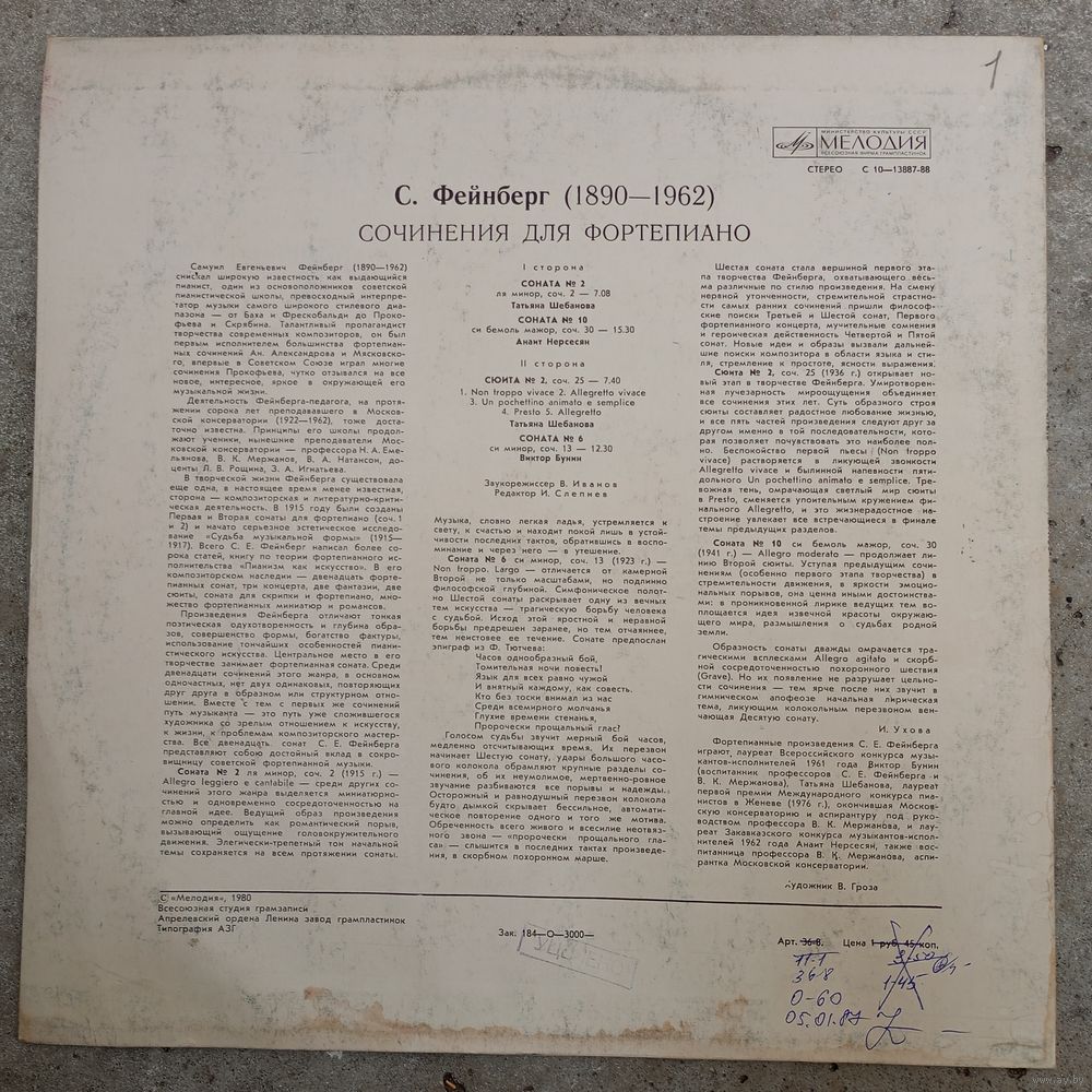 Татьяна Шебанова, Анаит Нерсесян*, Виктор Бунин**(ф-но) - Самуил Фейнберг. Сонаты No.2, No.10*, No.6**; Сюита No.2 - АЗГ