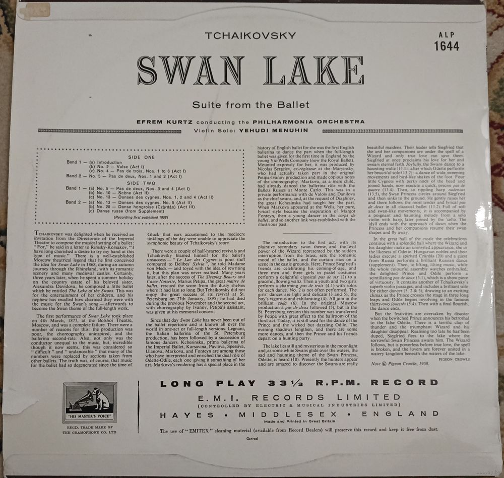 Tchaikovsky / Efrem Kurtz / Philharmonia Orchestra / Yehudi Menuhin – Swan Lake: Suite From The Ballet UK. Mono.