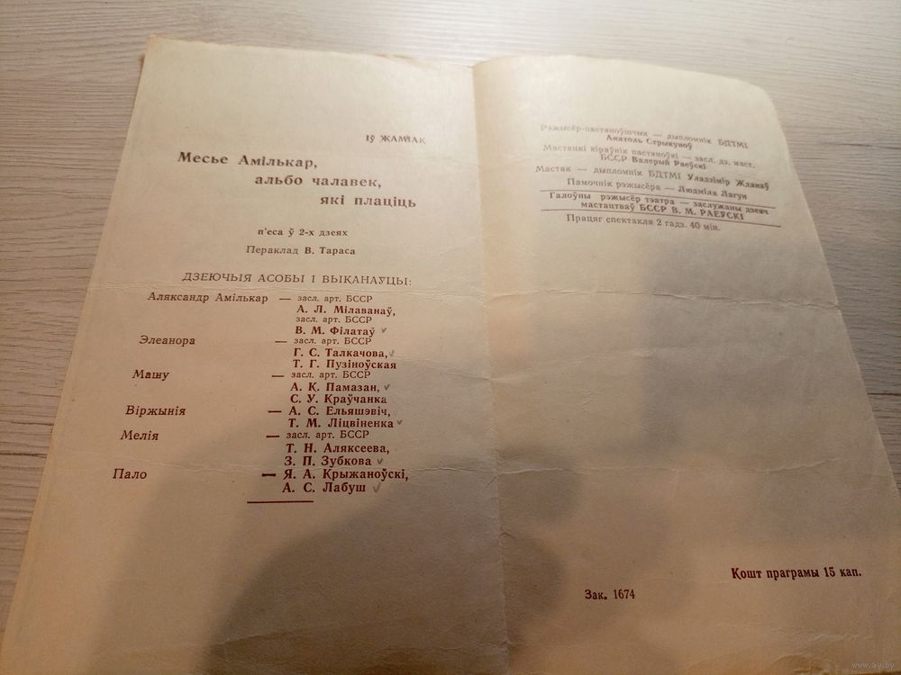 Театральная программка БССР\2