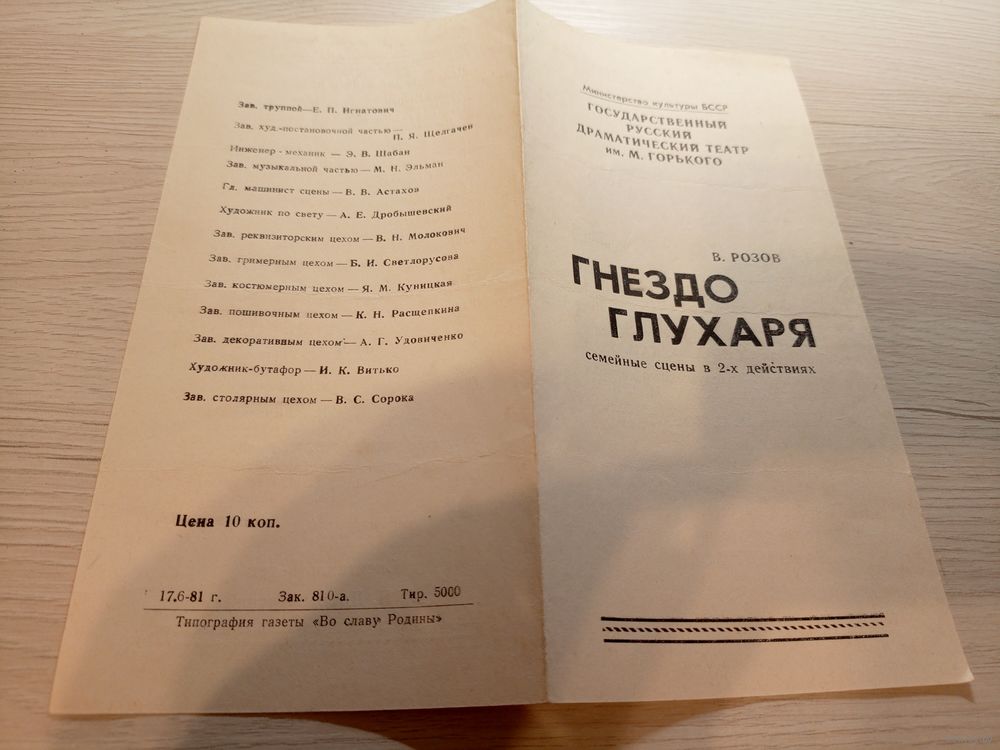 Театральная программка БССР\2