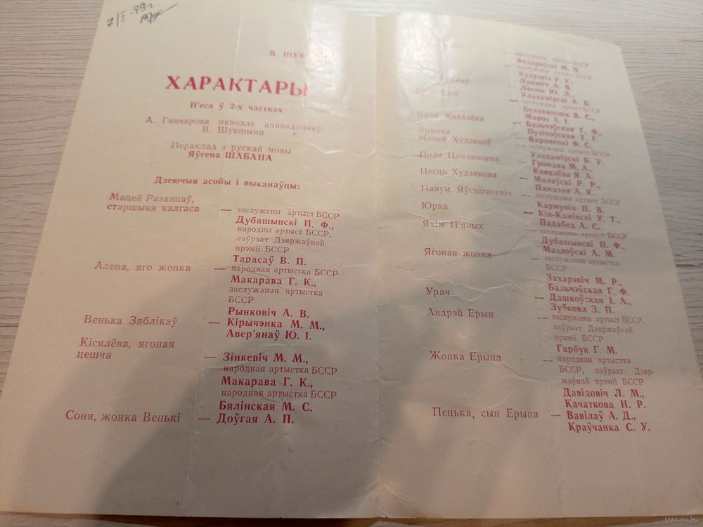 Театральная программка БССР\2