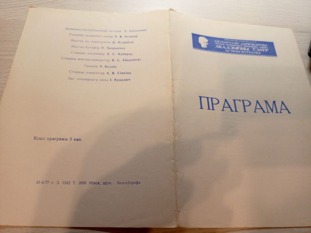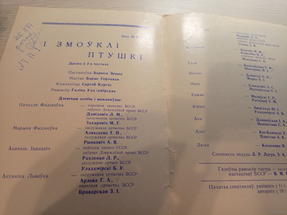 Театральная программка БССР\2