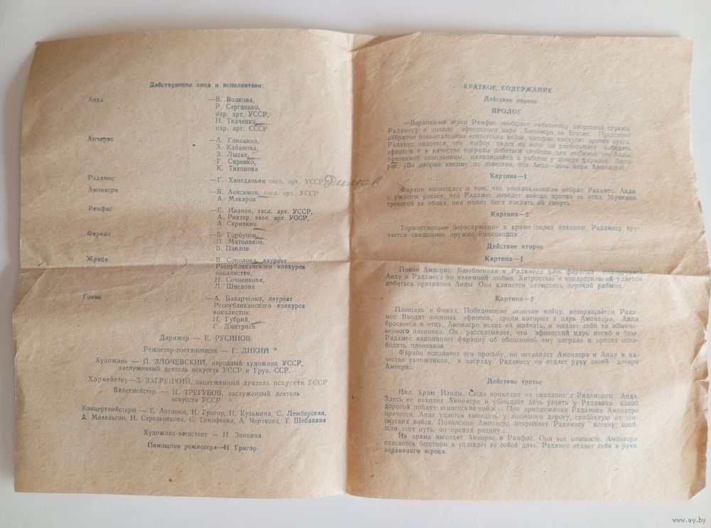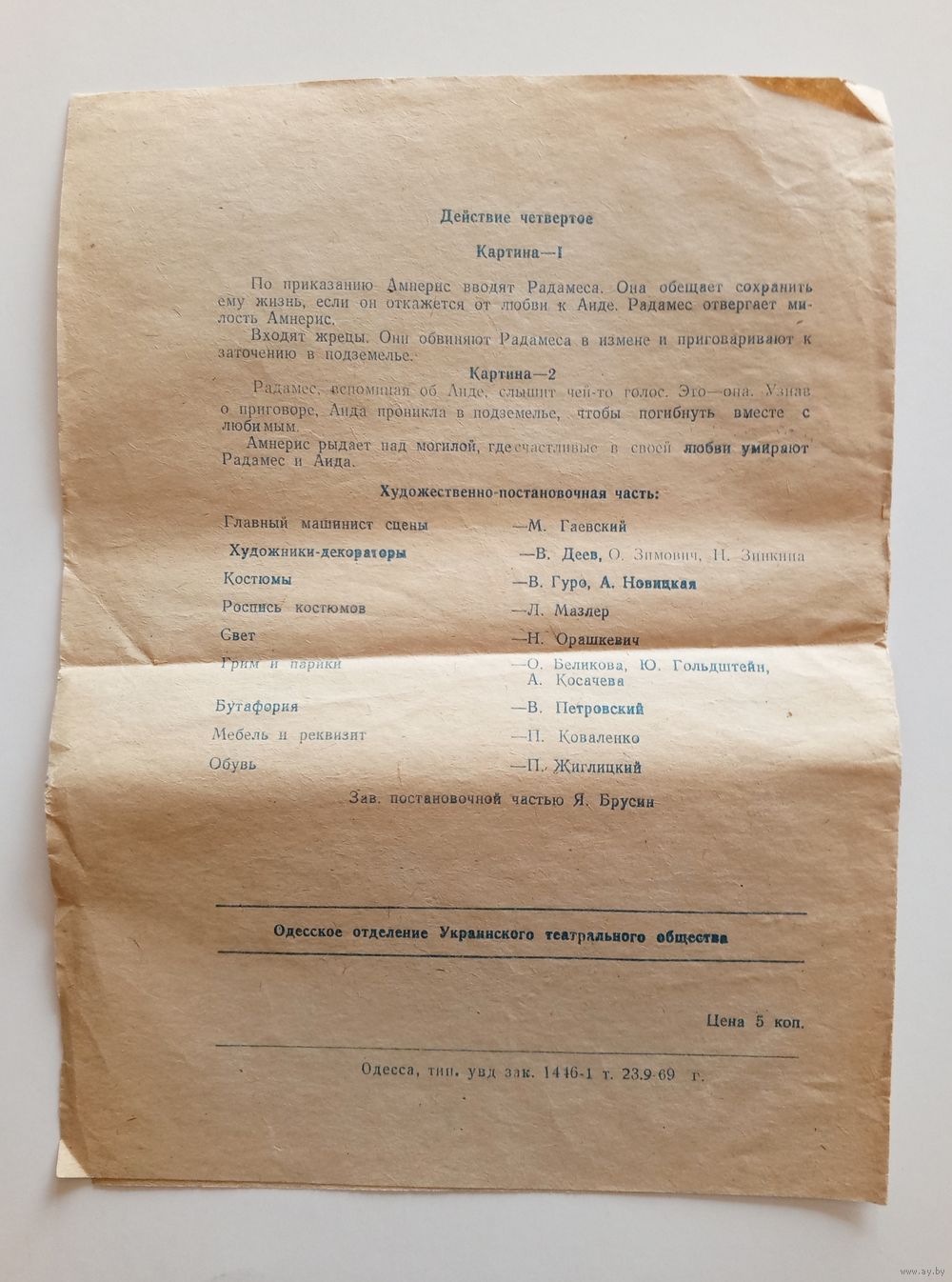 Театральная программка Одесского театра оперы и балета. "АИДА". Сезон 1969-1970 г.г.