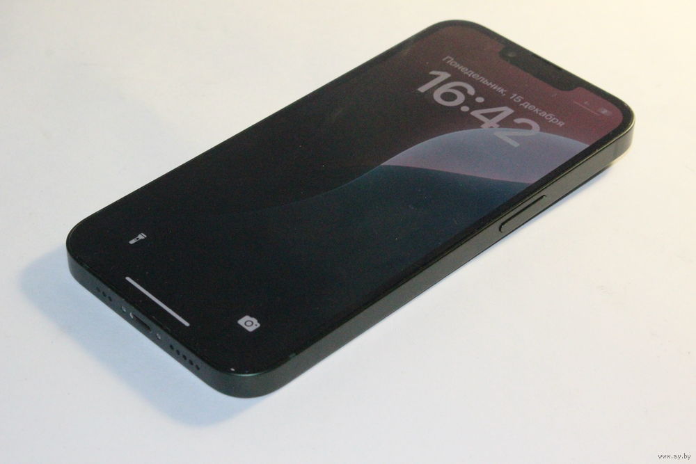 смартфон, Apple iOS, экран 6.1" OLED (1170x2532) 60 Гц, Apple A15 Bionic (4 ядра GPU), ОЗУ 4 ГБ, память 128 ГБ, камера 12 Мп, аккумулятор 3227 мАч, моноблок, влагозащита IP68, акб 89%