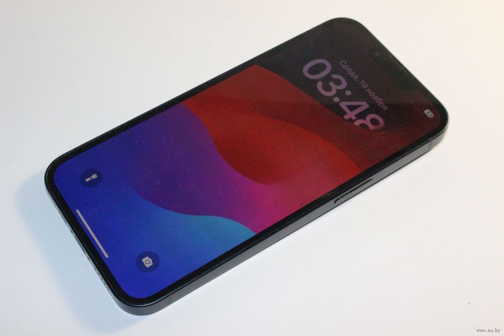 смартфон, Apple iOS, экран 6.1" OLED (1170x2532) 60 Гц, Apple A15 Bionic (4 ядра GPU), ОЗУ 4 ГБ, память 256 ГБ, камера 12 Мп, аккумулятор 3227 мАч, моноблок, влагозащита IP68, АКБ 77%