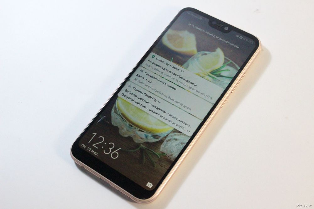 Android, экран 5.84" IPS (1080x2280), HiSilicon Kirin 659, ОЗУ 4 ГБ, память 64 ГБ, аккумулятор 3000 мАч, моноблок