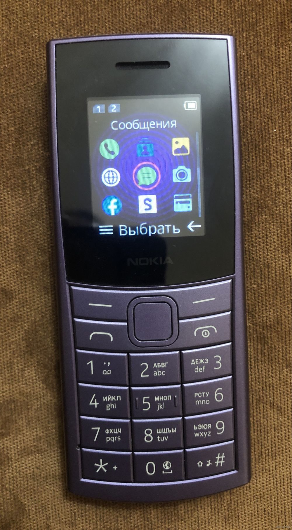 Телефон Nokia 110 4G Dual SIM (фиолетовый) кнопочный телефон, Nokia Series 30+, количество физических SIM-карт - 2, формат SIM-карты nano-SIM, поддержка 4G LTE, экран 1.8" TFT (128x160), UniSoC Tiger T117, ОЗУ 128 Мб, камера 0.08 Мп, память 48 Мб, поддержка карт памяти microSDHC, максимальная емкость карты памяти 32 ГБ, FM-приемник, передача данных EDGE, HSPA, HSPA+, LTE, bluetooth 5,0 аудиовыход 3.5 мм., влагозащита IP52, разъем подключения microUSB 2.0 тип аккумулятора Li-ion, емкость аккумулятора 1450 мА/ч, аккумулятор съемный, время разговора 8 часов, максимальное время ожидания 12 суток. В комплекте сетевой адаптер, наушники. В работе не был. Купили пожилому человеку, но не понадобился…