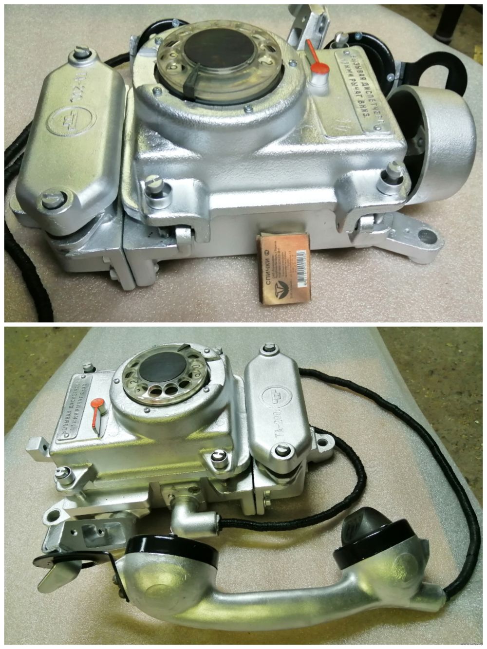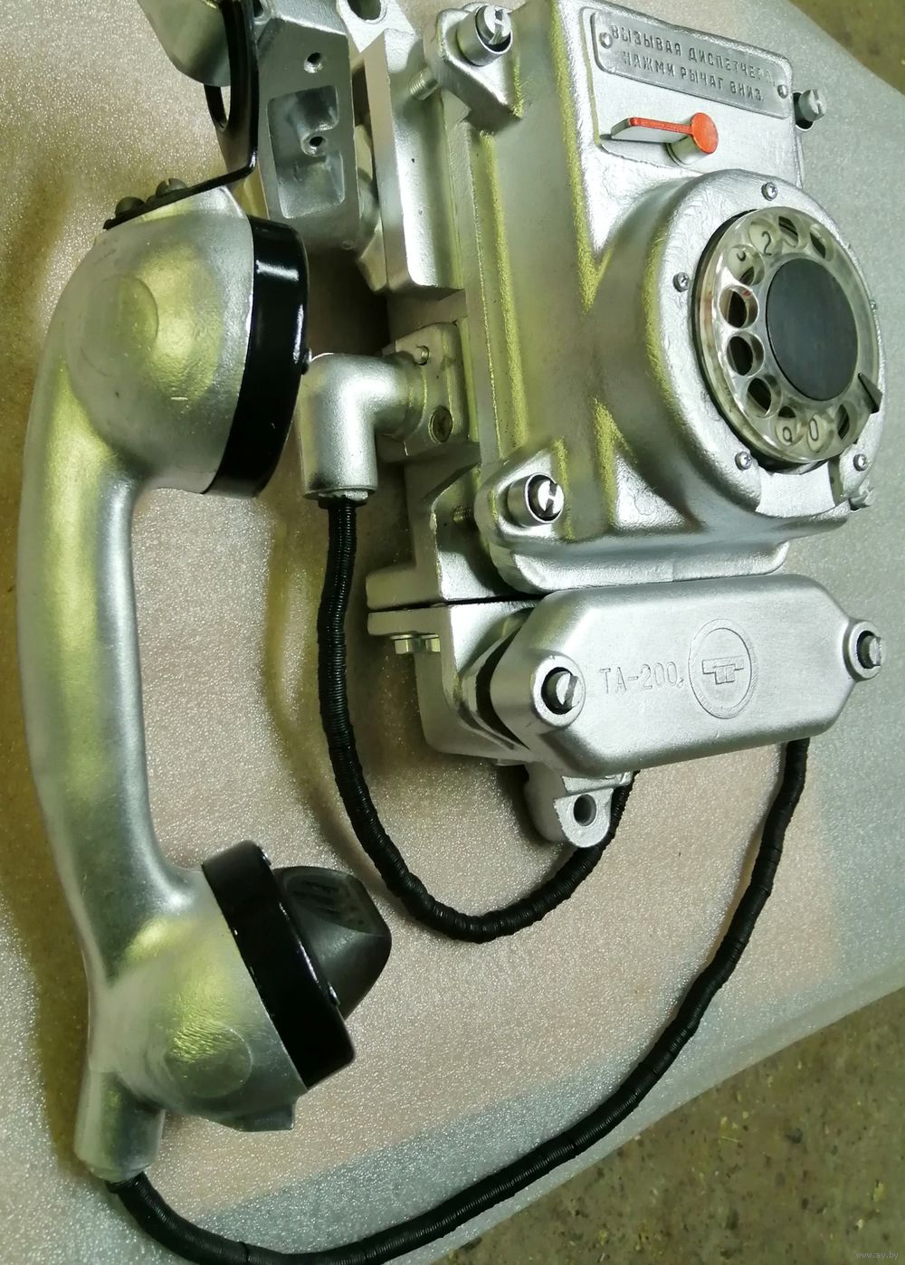 Телефонный взрывозащищенный и взрывобезопасный аппарат "ТА-200" относится к аппаратам специального назначения и предназначен для работы в шахтах и карьерах горнодобывающих предприятий. К аппарату предъявляются повышенные требования по защите от влаги, пыли и механических воздействий. Аппарат снабжен дисковым номеронабирателем и специальным контактным рычагом подачи экстренного сигнала на диспетчерский пульт. Вес ТА - 8 кг.
