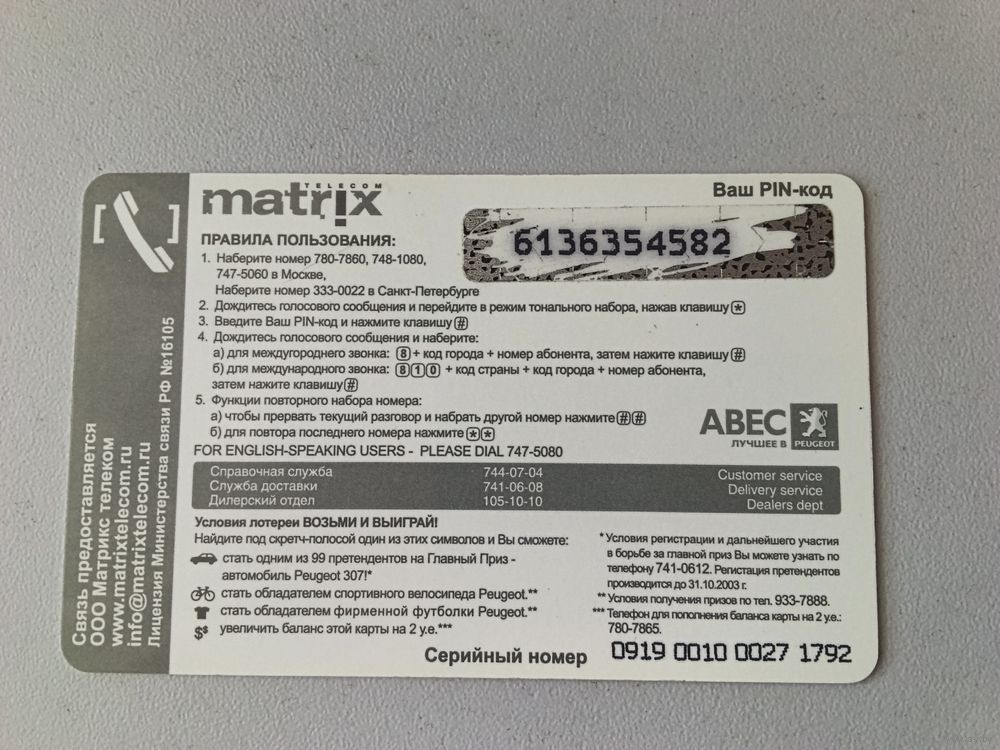 Телефонная карта.