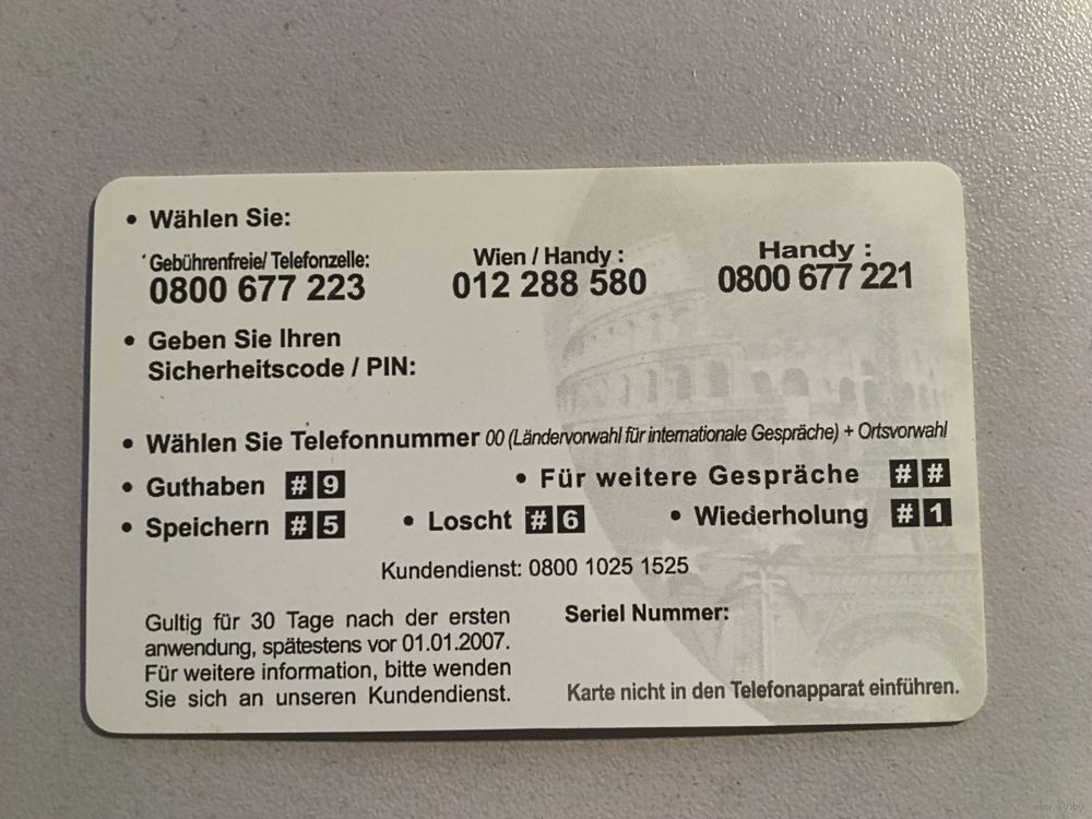 Телефонная карта.