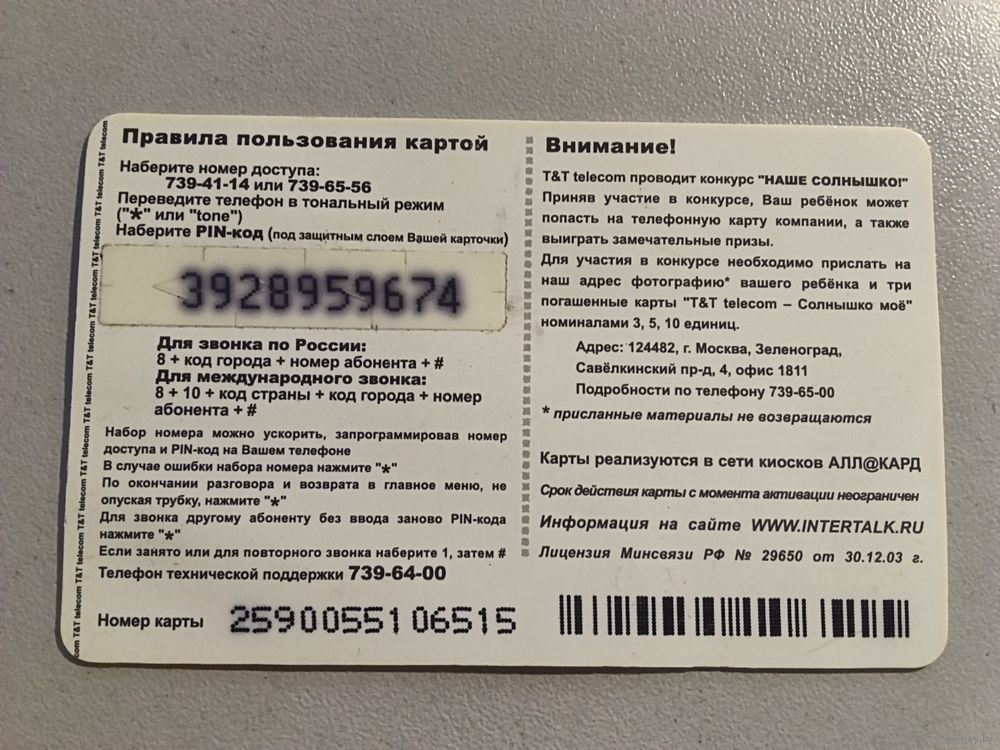 Телефонная карта.