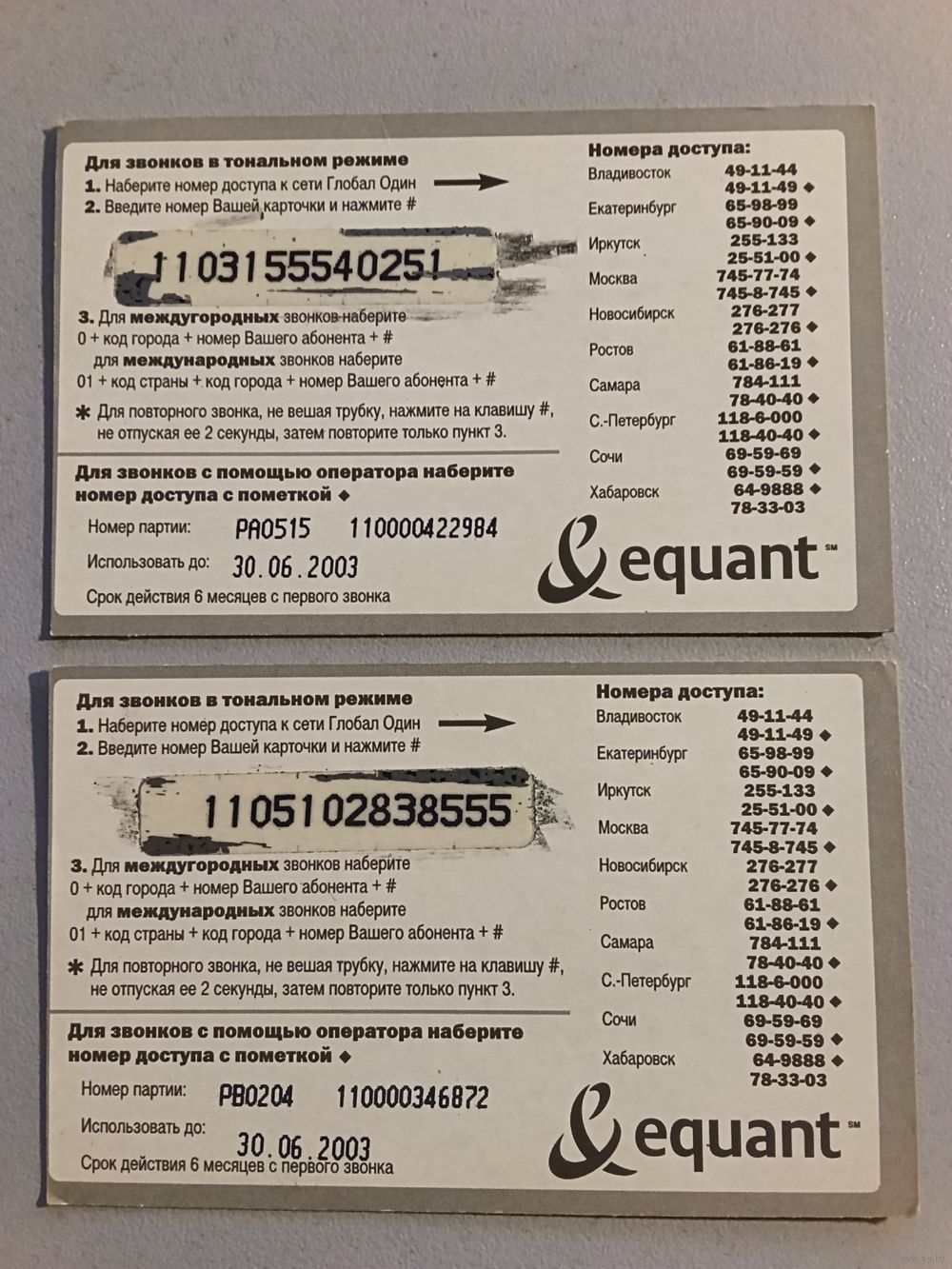 Телефонная карта.
