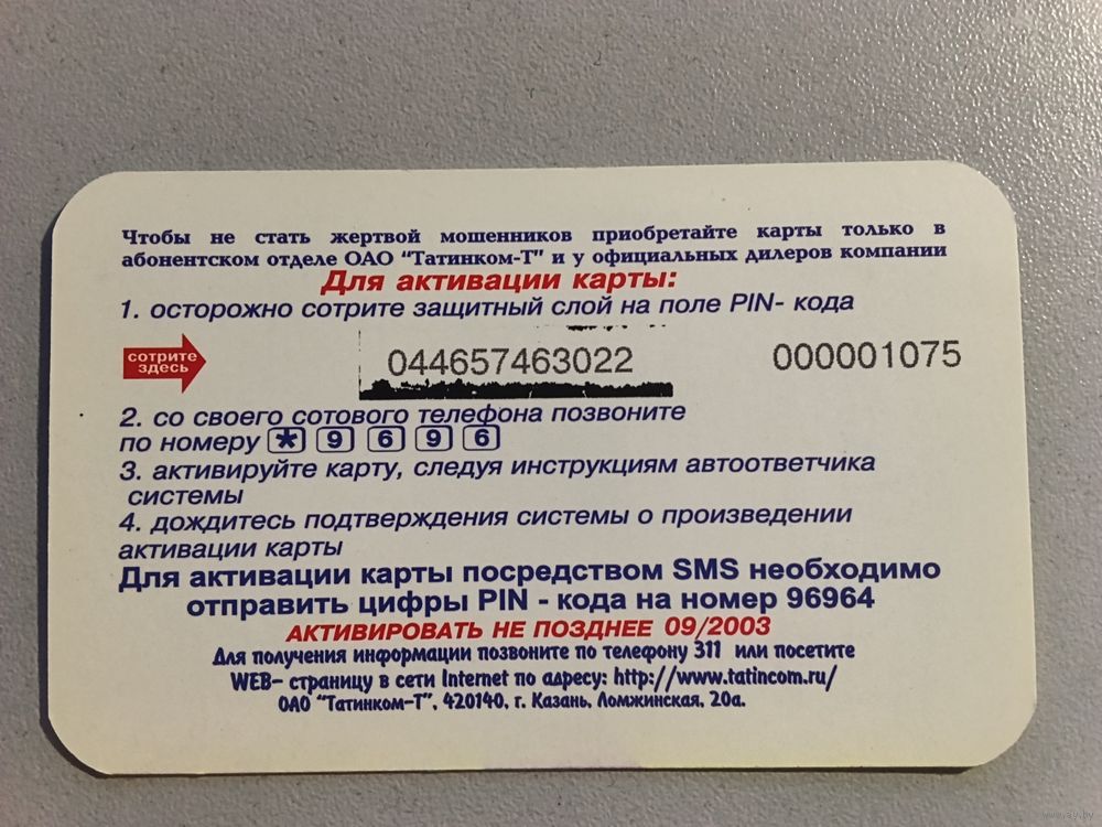 Телефонная карта.