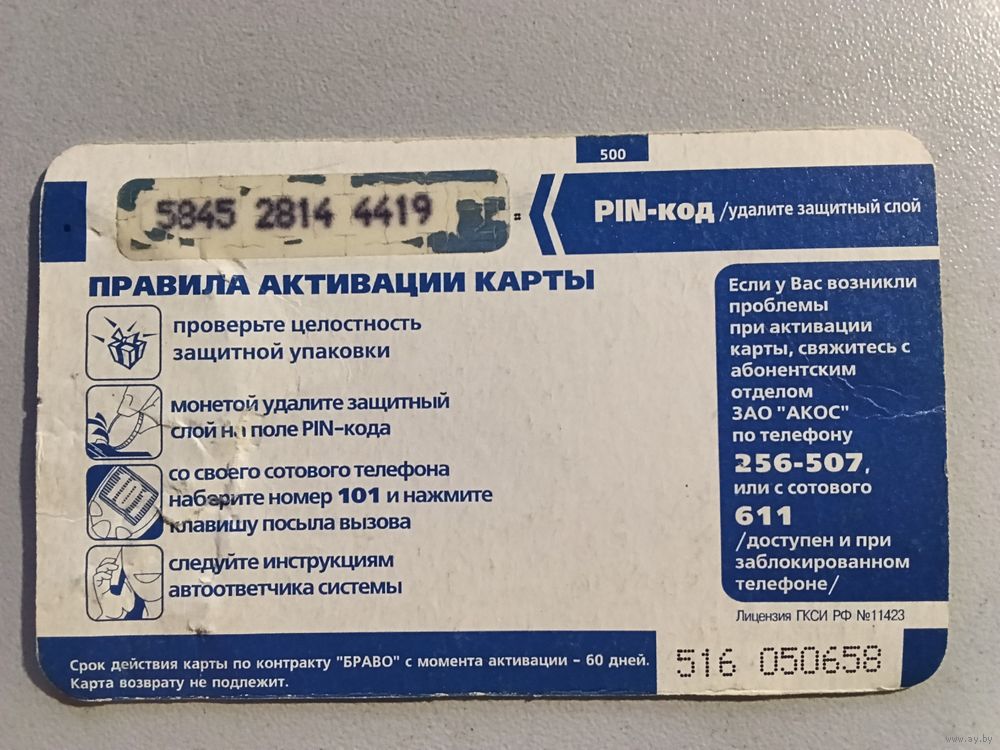 Телефонная карта.