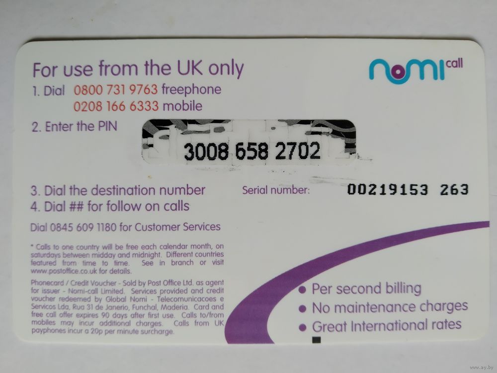 Телефонная карта. Англия