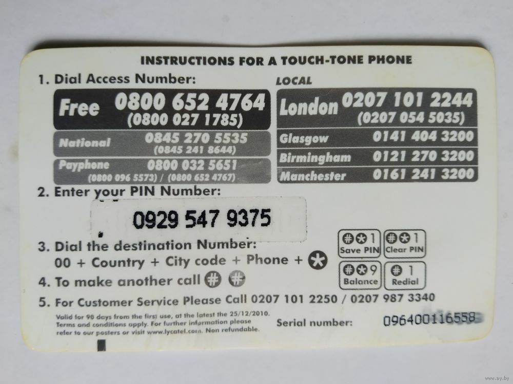 Телефонная карта. Англия