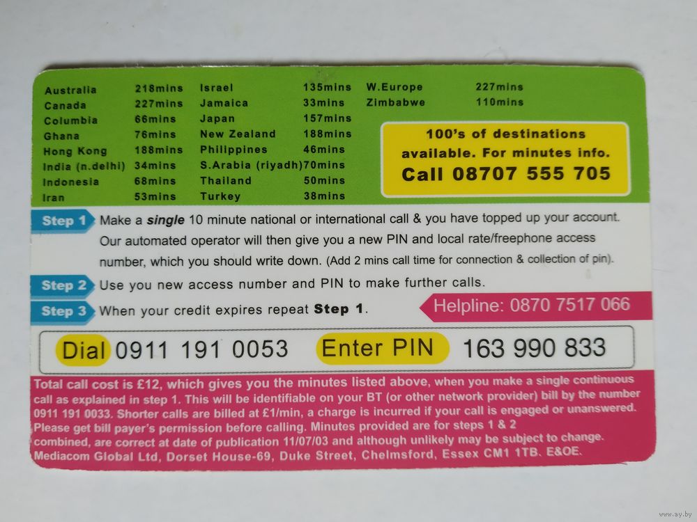 Телефонная карта. Англия
