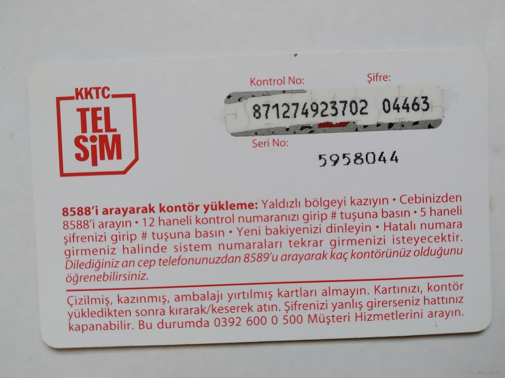 Телефонная карта. Турция.