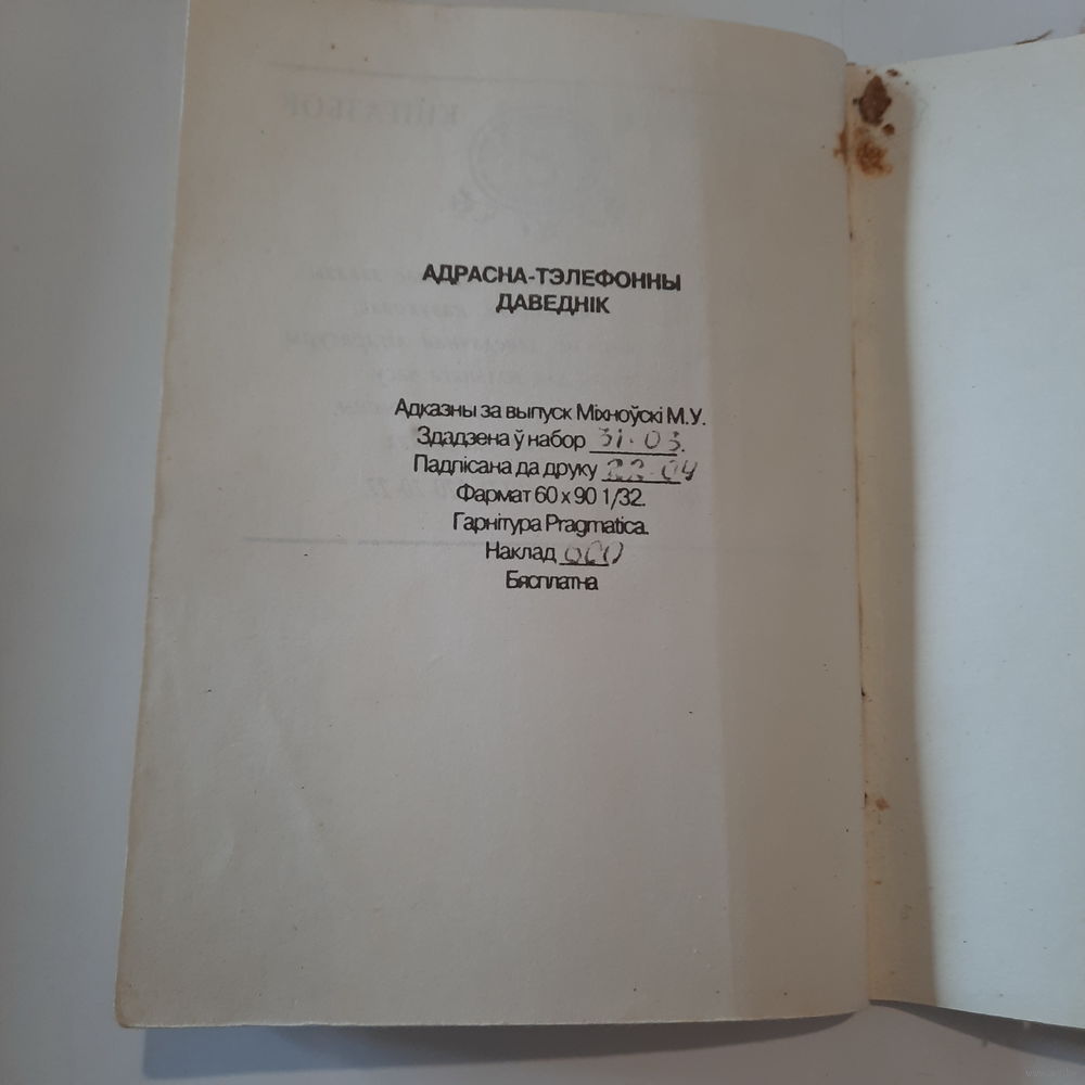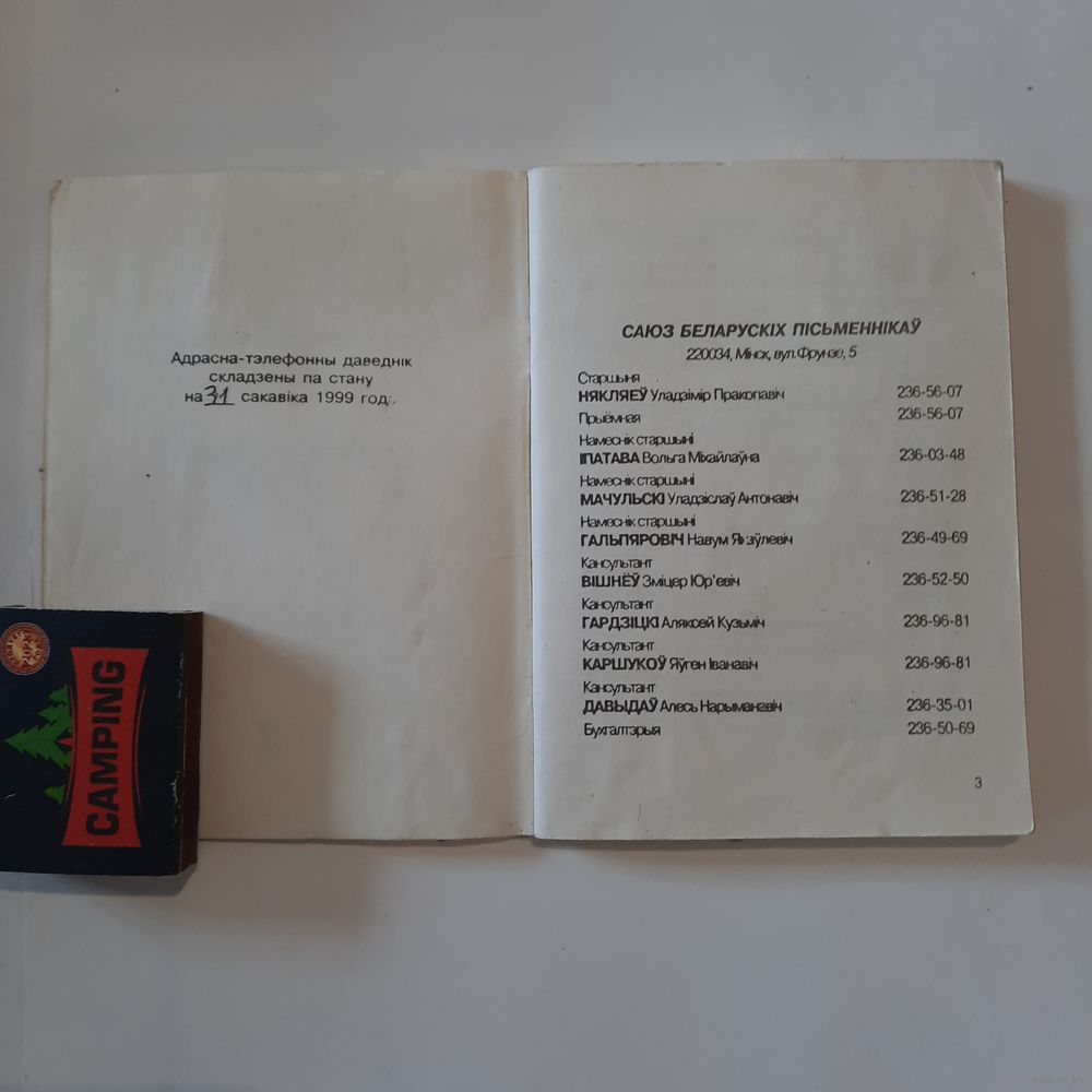 Тэлефонны даведнік Саюза Беларускіх пісьменнікаў. Мінск 1999г. (наклад 600 асобнікаў)
