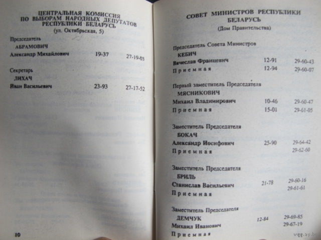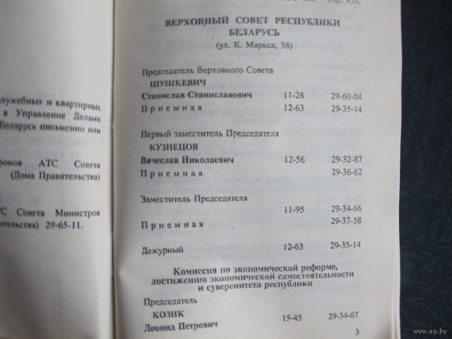 Телефонный справочник руководства советских, хозяйственных органов и общественных организаций РБ (20 февраля 1993 г.)