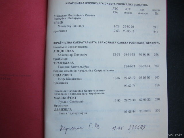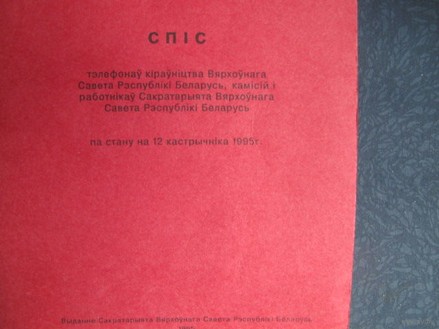 Телефонный справочник Верховного Совета РБ (12 октября 1995 г.)
