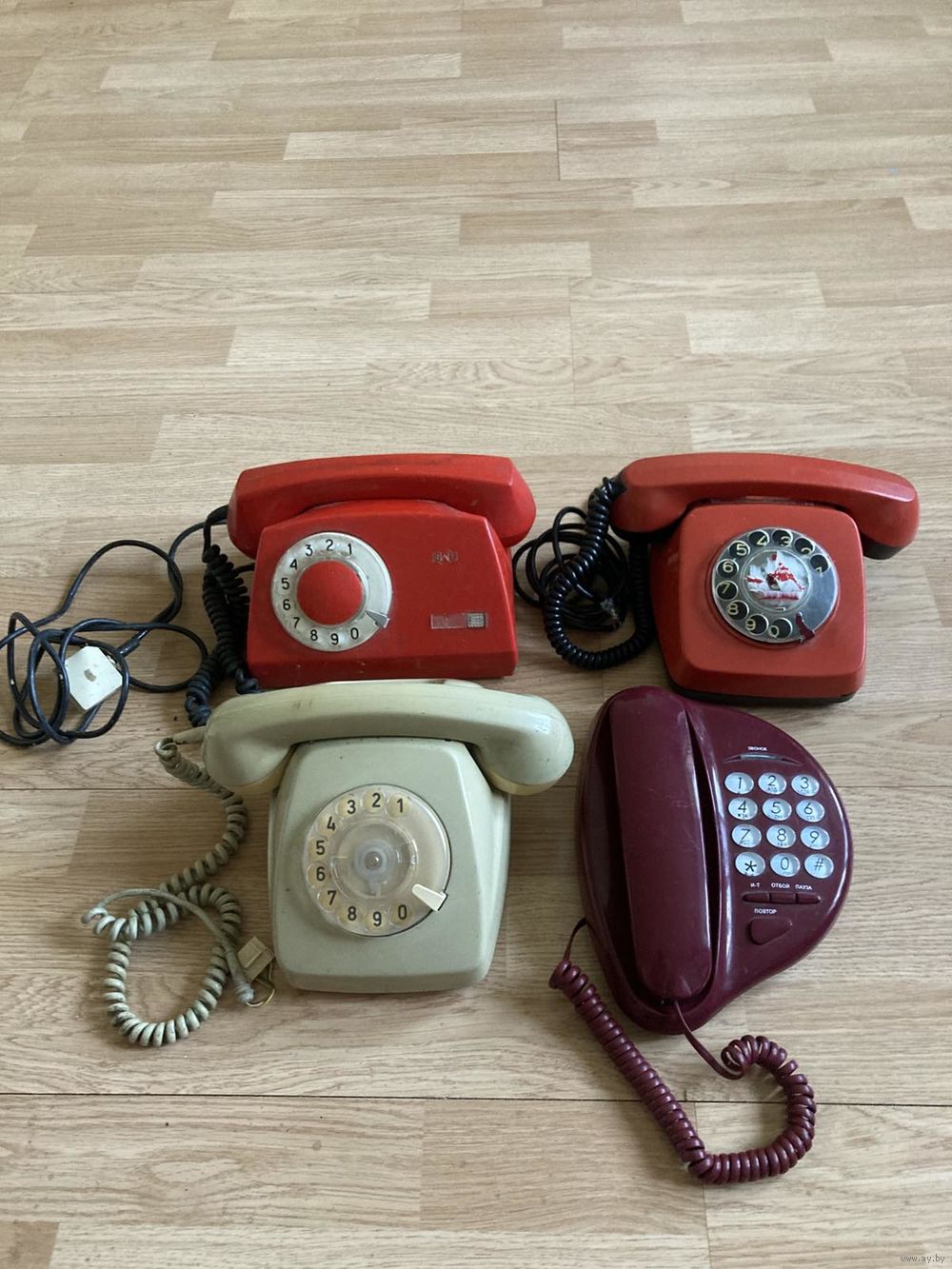 Старые телефоны, дисковые и кнопочные. Красный (Болгария), светлый (Германия, Сименс). Первого красного, нет в наличии. Зеленый (Германия). Светлый кнопочный Панасоник. Работоспособность точно неизвестна. Какие-то рабочие, какие-то нерабочие. Продаю, как нерабочие все. Отправлю любой почтой.
