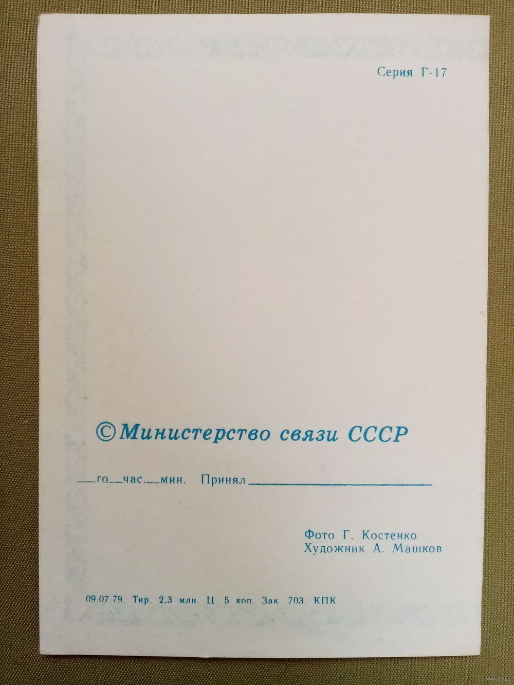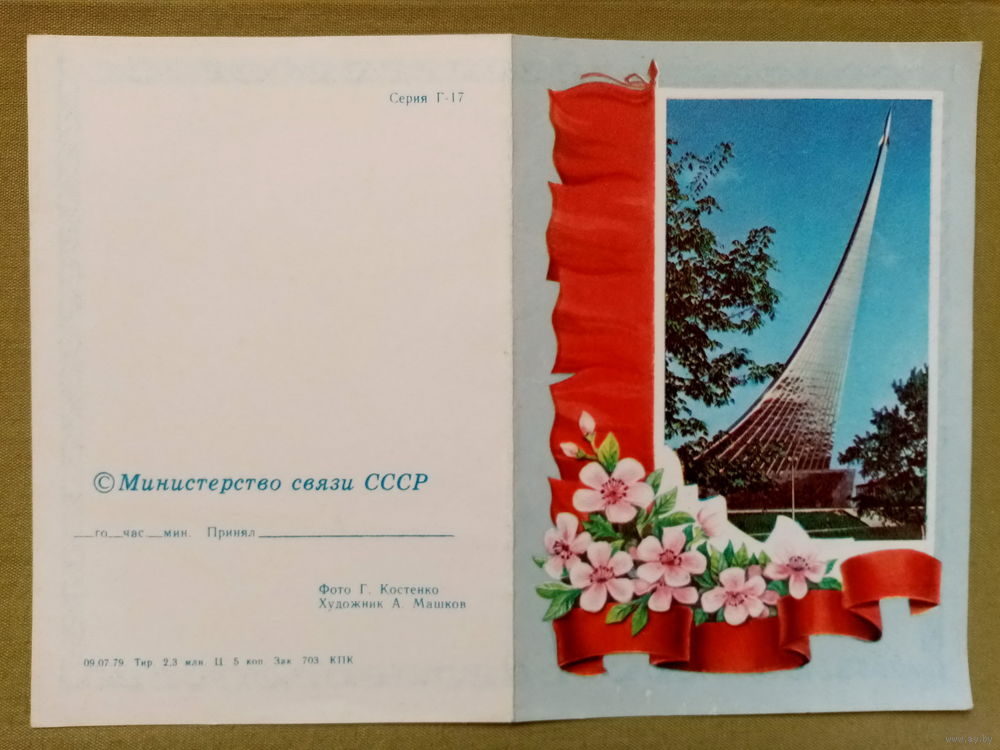 Телеграмма Костенко Машков 1979 С праздником 1 Мая ! чистая СССР