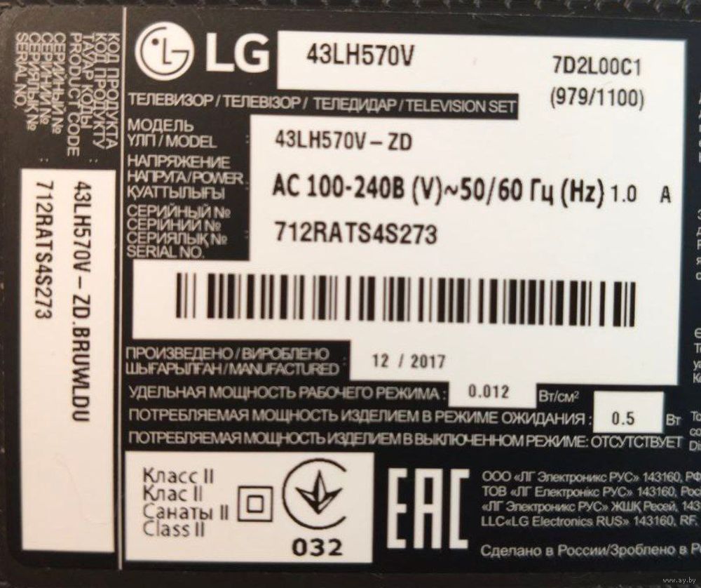 ТВ «LG 43LH570V» с разбитой матрицей,других проблем нет-включается,экран горит,звук есть,выпущен в декабре 2017 г.Только телевизор,без акссесуаров,в остальном корпус,рамка как новые.Маркировки для зап.частей на фото,самовывоз,территориально ул.Комарова.Просьба смс не писать,общаюсь только по телефону.