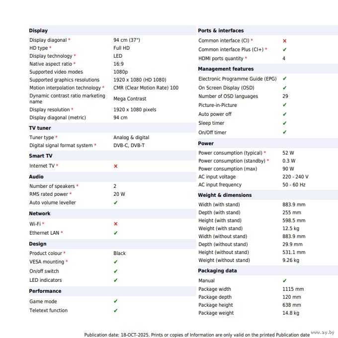 c четким, ярким и насыщенным изображением, мощным звуком 20Вт,