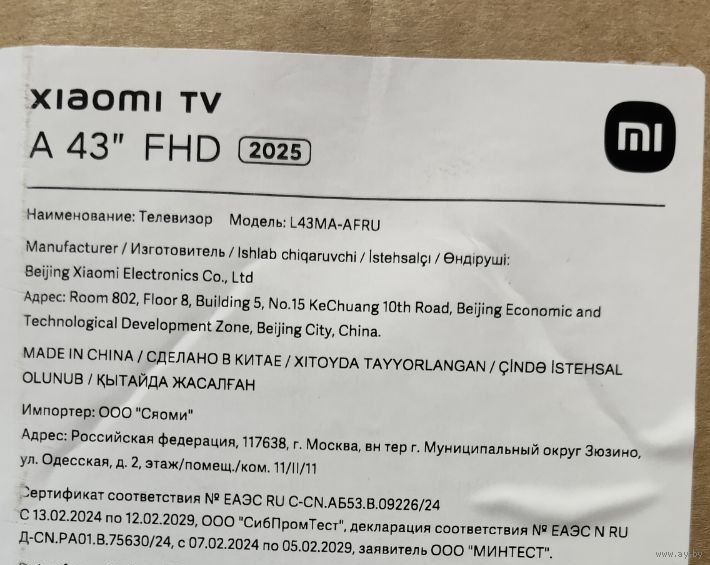 Новый SMART телевизор «Xiaomi TV A 43" Full HD 2025 43"» полный заводской комплект +
