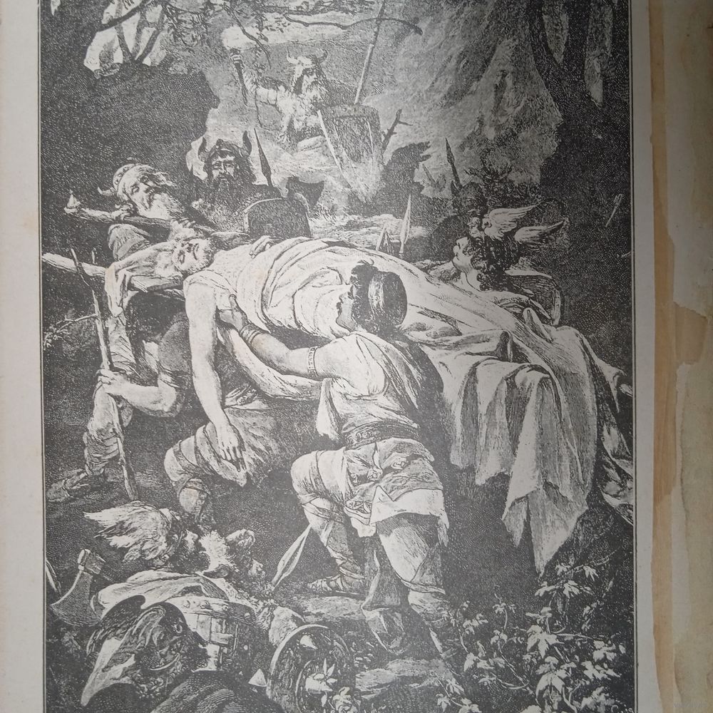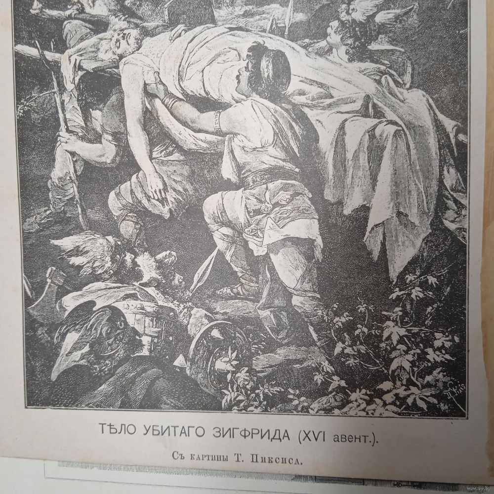 Тело убитаго Зигфрида . Гравюра энциклопедическая 19век. 20х14см. СПБ.