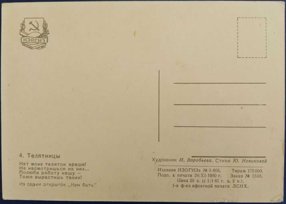 Открытка в хорошем состоянии, но имеет надломанный уголок, см.фото.