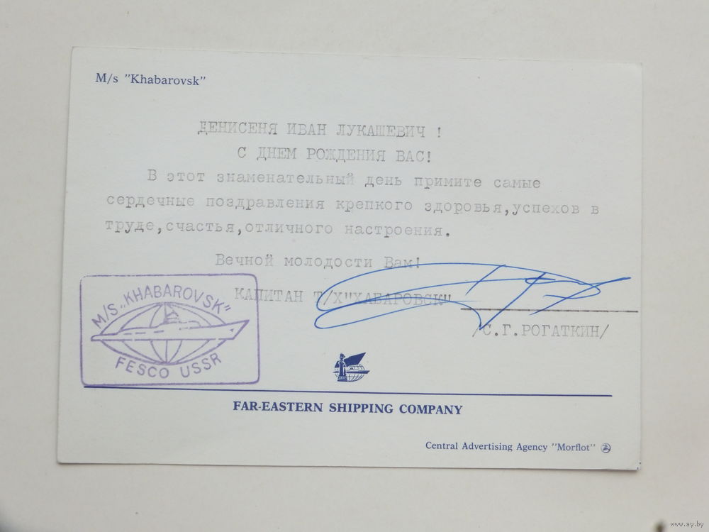 Теплоход Хабаровск автограф капитана 1980-е 10х15 см