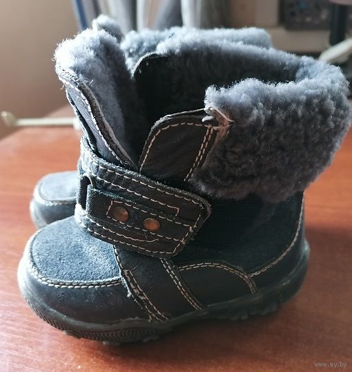 Теплые зимние сапожки для малыша до года, как новые, без дефектов. Натуральная кожа, замша и мех. Маркировка 20, по стельке 12-12,5см.