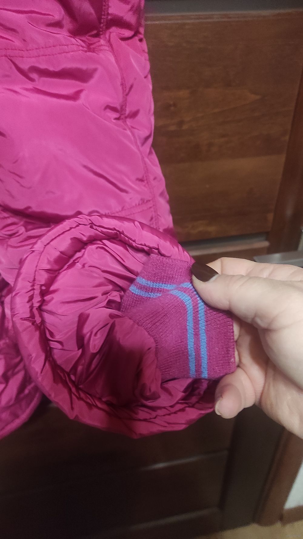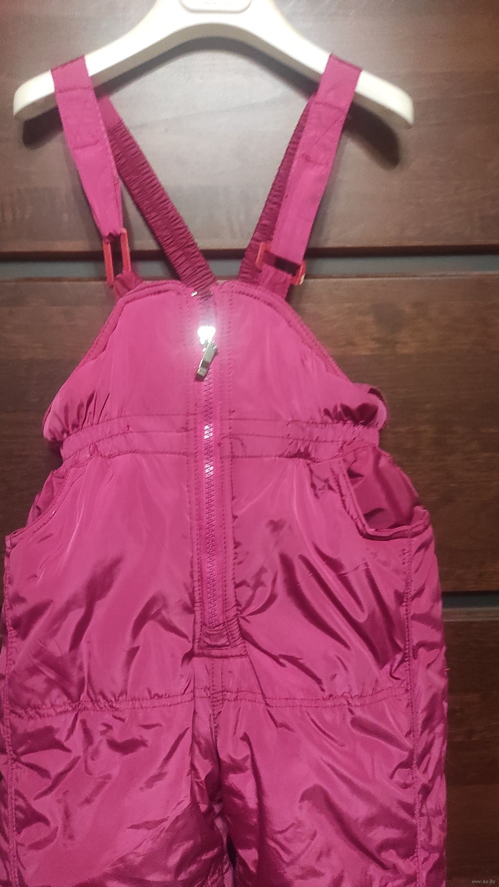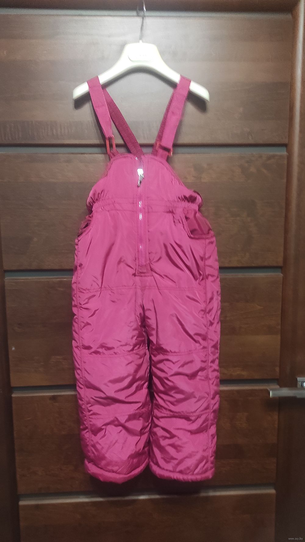 Теплый зимний яркий комбинезон на рост 110-116 см. Очень классный и удобный, верх регулируется на липучках. Длина без учета шлеек меряла сбоку 65 см, шаговый 39 см, Поталии тянется, на резинке 26-33 см. Отличное состояние.