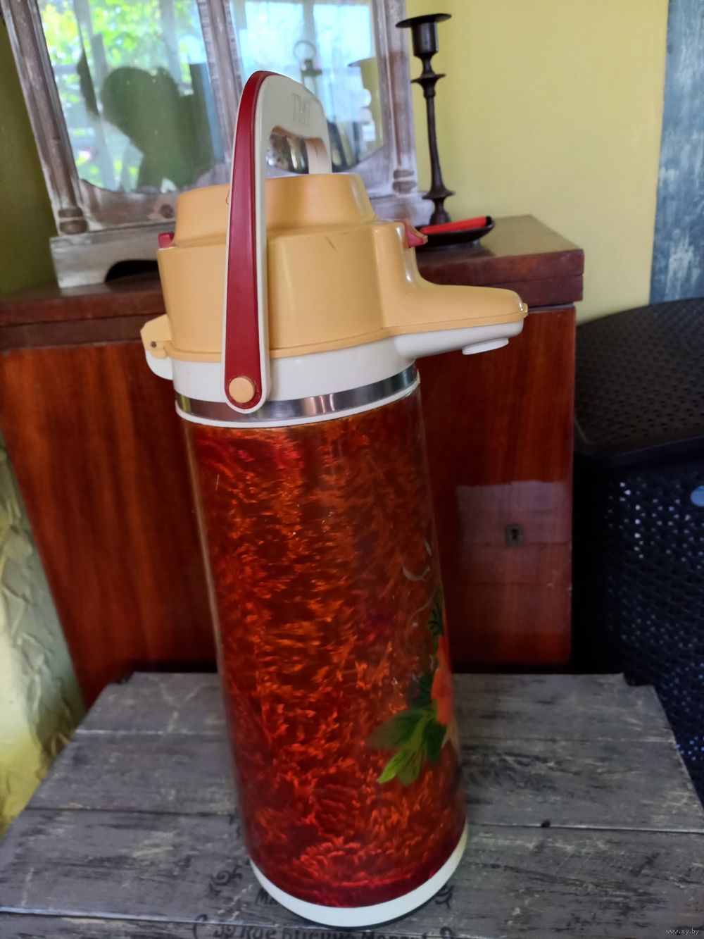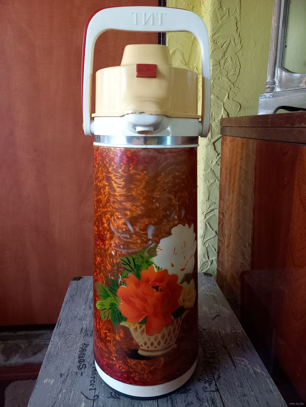 Термос Китай, большой, времен СССР, на 3 литра с помпой. Колба целая, рабочий.