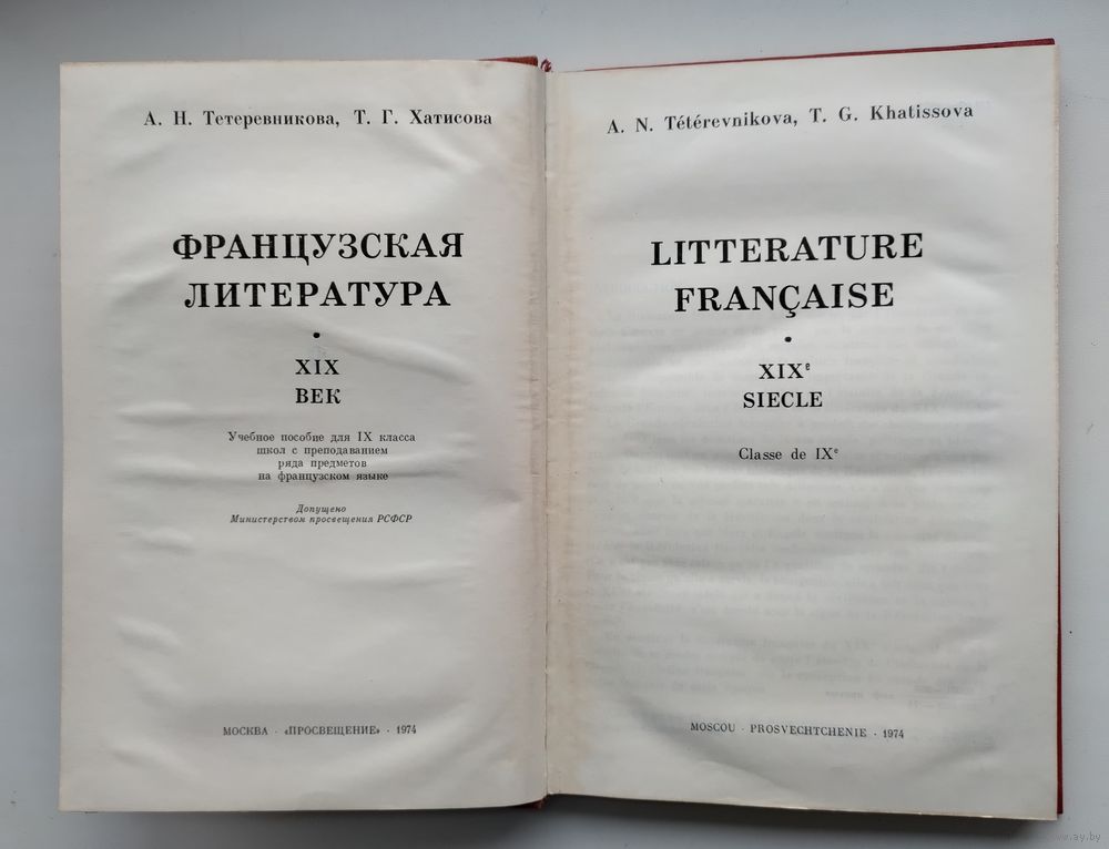 Тетеревникова А.Н., Хатисова Т.Г. Французская литература, XIX век. М.: Просвещение, 1974г., 224 с. Твёрдый переплёт, увеличенный формат.
