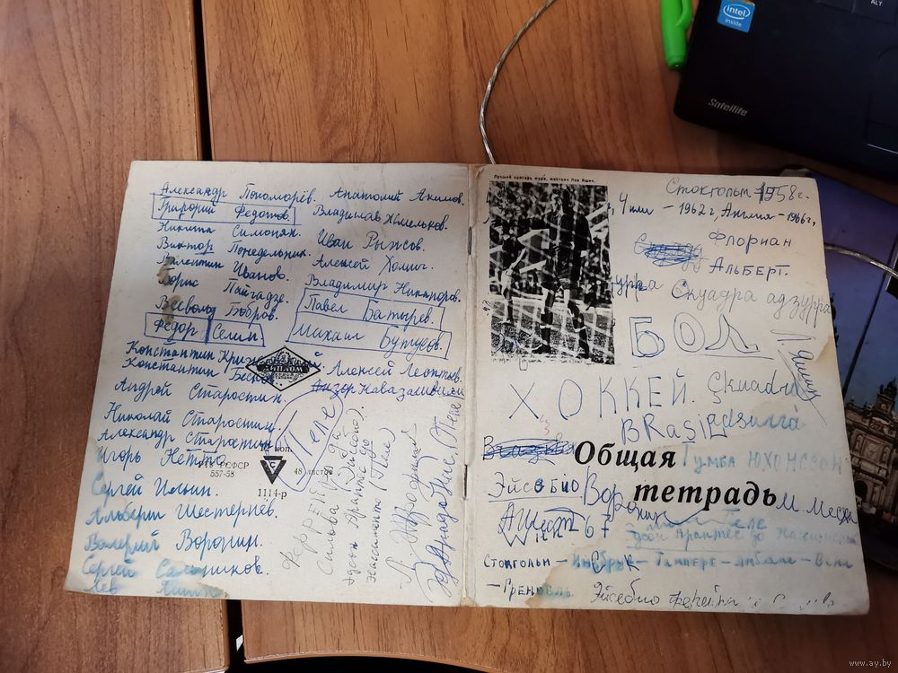 Тетрадь с вырезками . Игроков мирового и советского Футбола и Хоккея.Игровые моменты. Команды. 28 листов.