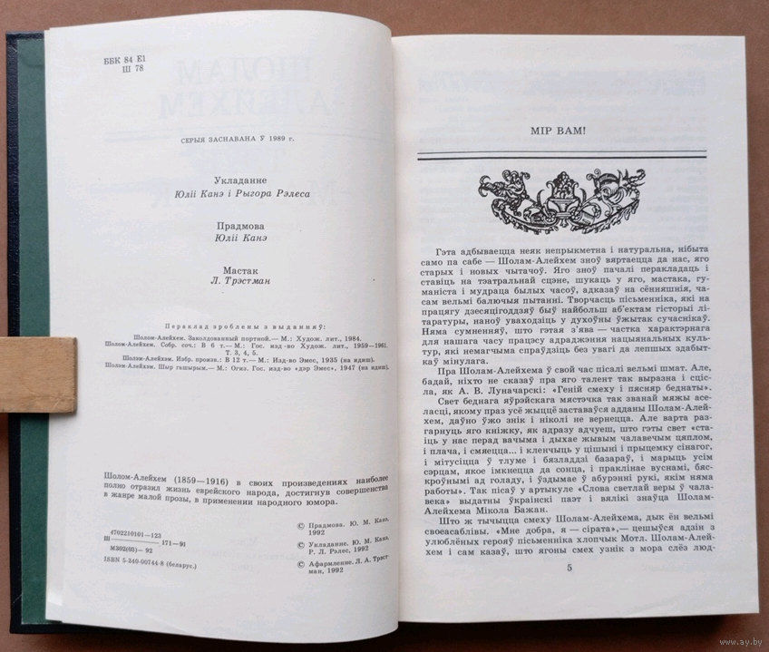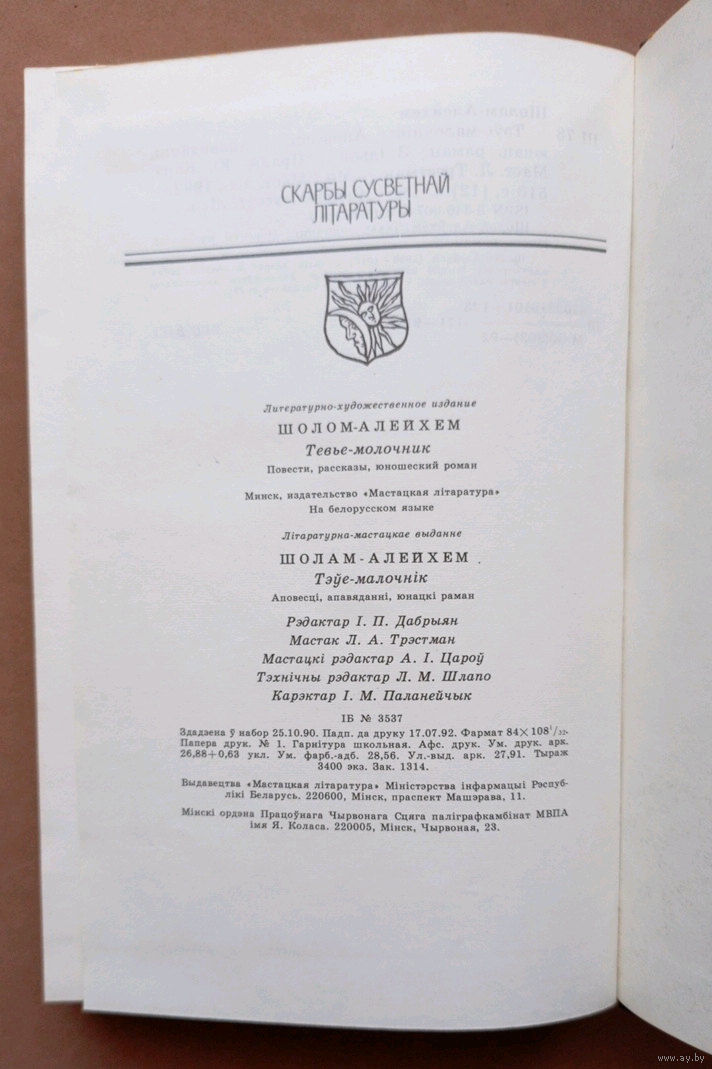 Выдавецтва "Мастацкая літаратура". 1992г. Мастак Л.А. Трэстман. Тыраж 3 400 экз.