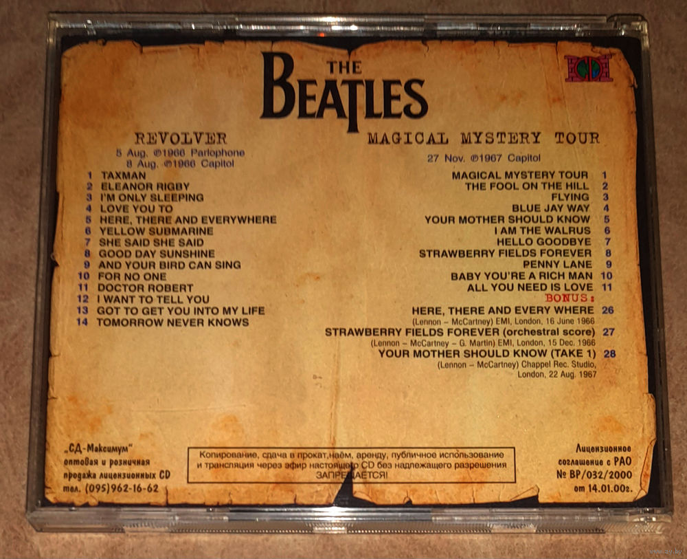 This unofficial release contains Revolver (originally released by Parlophone on 1966-08-05 and by Capitol on 1966-08-08) and Magical Mystery Tour (originally released by Capitol on 1966-11-27) in full, plus 3 bonus tracks.