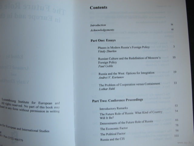 The future role of Russia in Europe and in the world