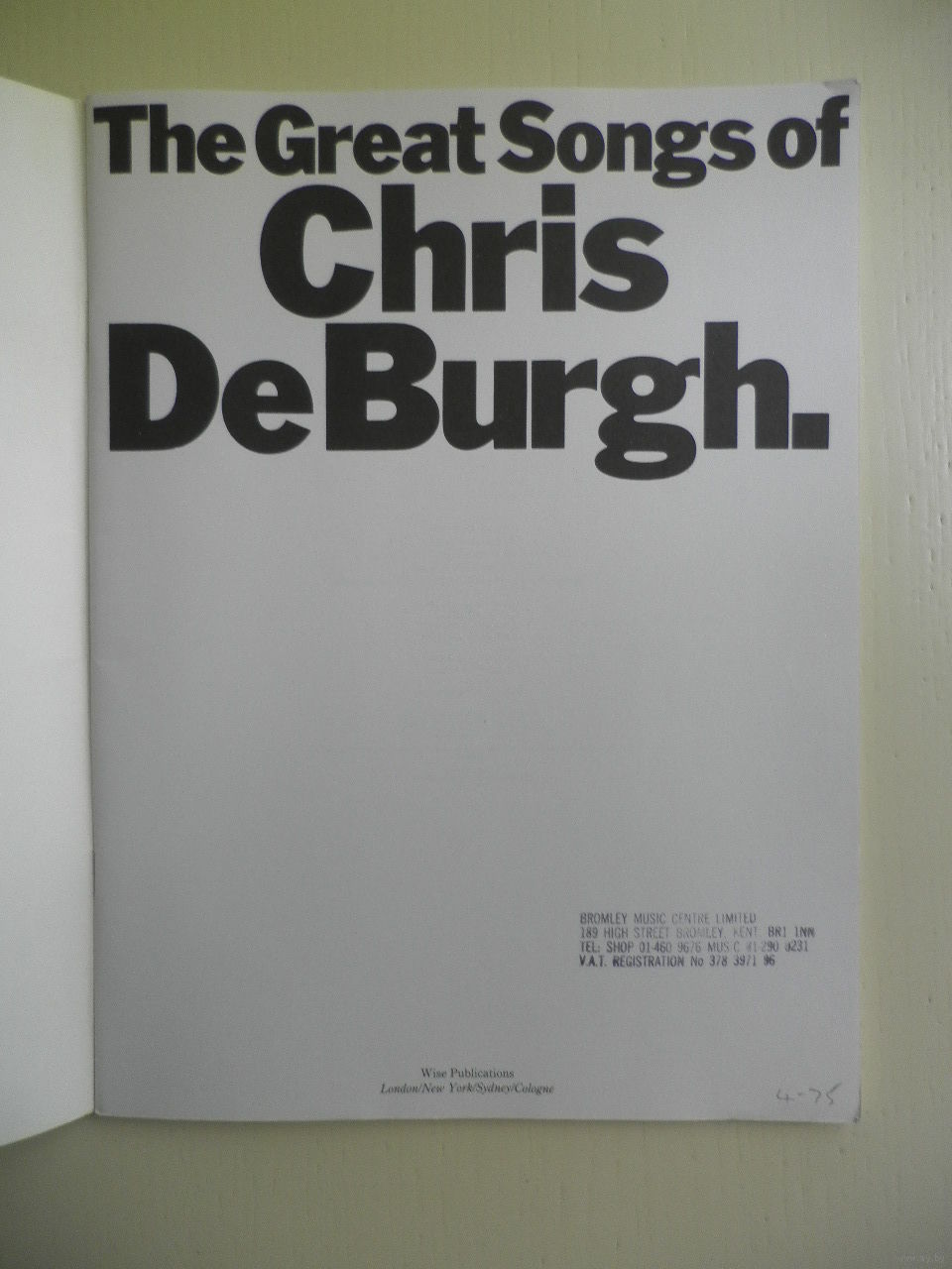 | Крис Де Бург, лучшие песни, ноты, на английском языке | |