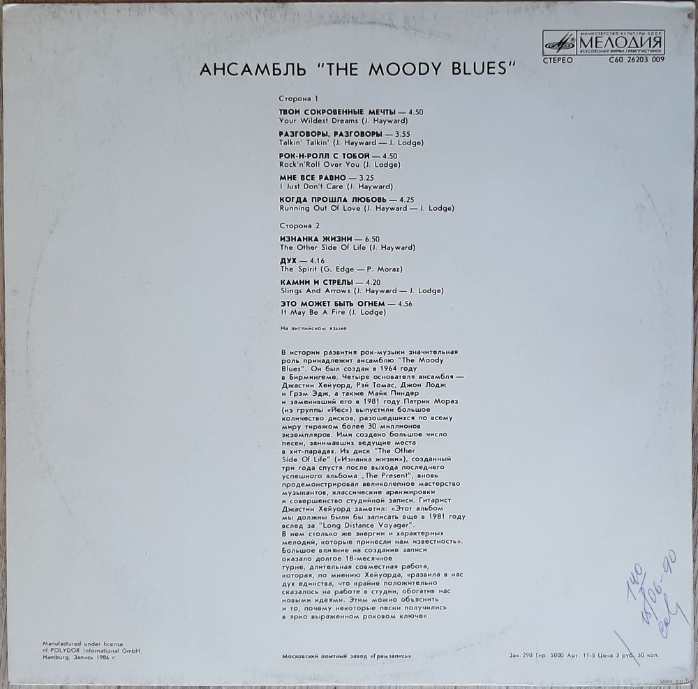 The Moody Blues LP The Other Side Of Life 1987 Москва