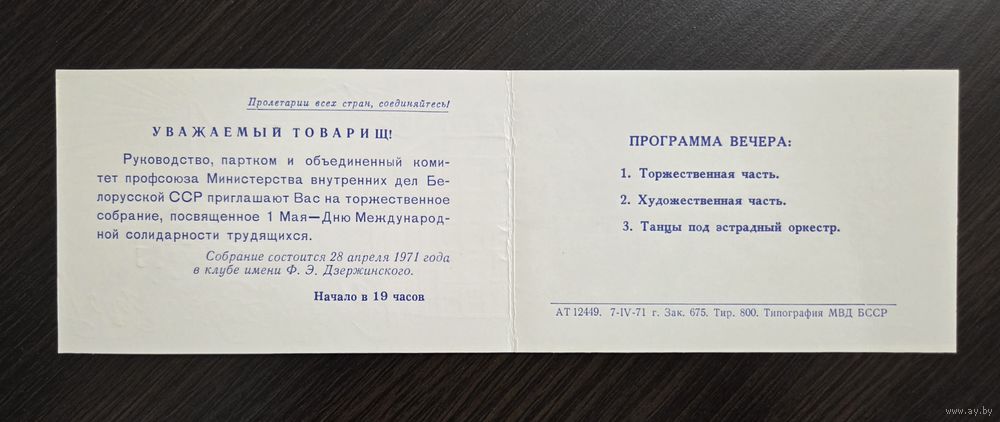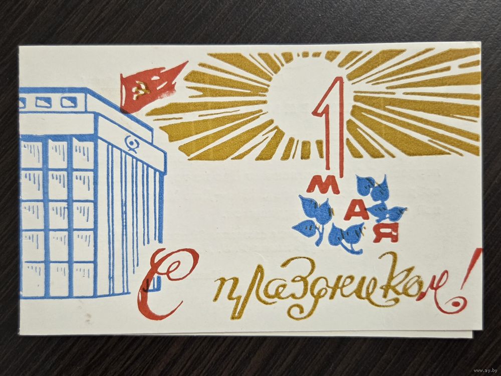 Типография МВД БССР С праздником 1 мая 1971 малотиражная подписанная открытка СССР приглашение (БССР, Беларусь) уменьшенный формат