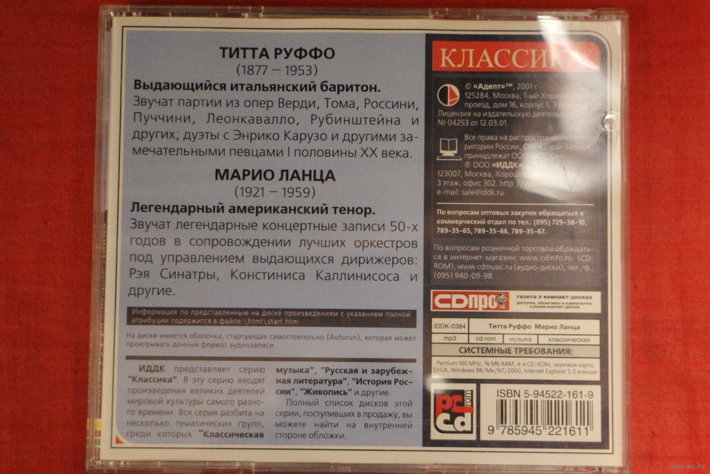 Титта Руффо, Марио Ланца - Дивные Голоса XX Века (CD-ROM)