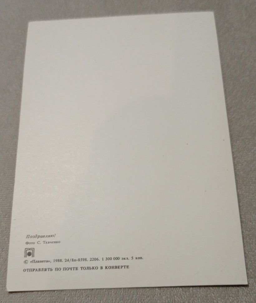 Ткаченко С., Поздравляем! 1989, чистая. Передача в Витебске при личной встрече возле ратуши. Пересылка в другой город за счёт покупателя по тарифам Белпочты либо Европочты после 100% предоплаты.