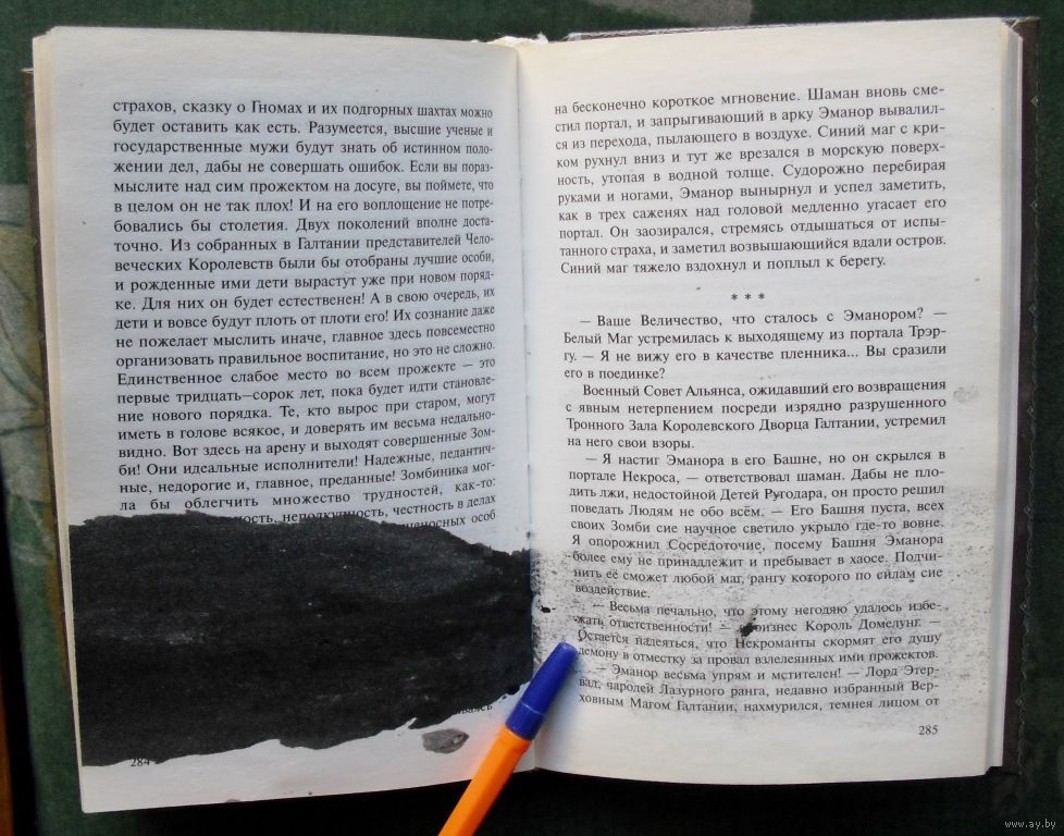 | Заметил три страницы с пятнами типографской краски (производственный брак). | |